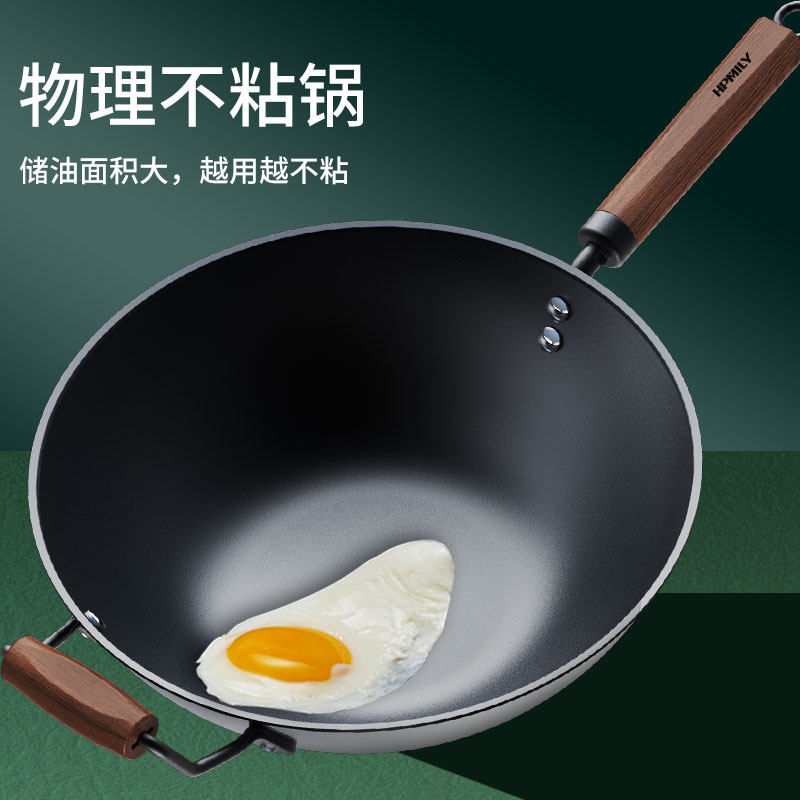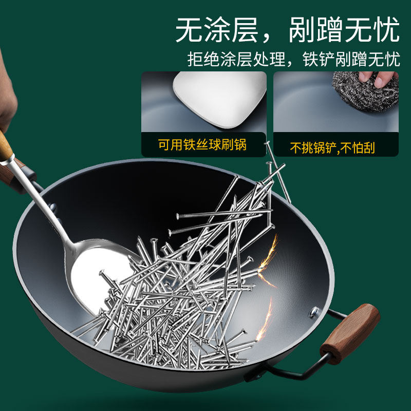 German old-fashioned iron pot Household uncoated cooking pot non-stick pan round flat-bottomed gas stove special lightweight wrought iron