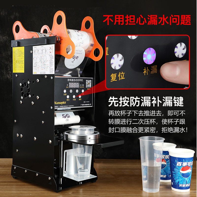 Coolmai KM-92 automatic film wrapping machine beverage soy milk paper high cup semi-automatic milk tea sealing machine sealing machine