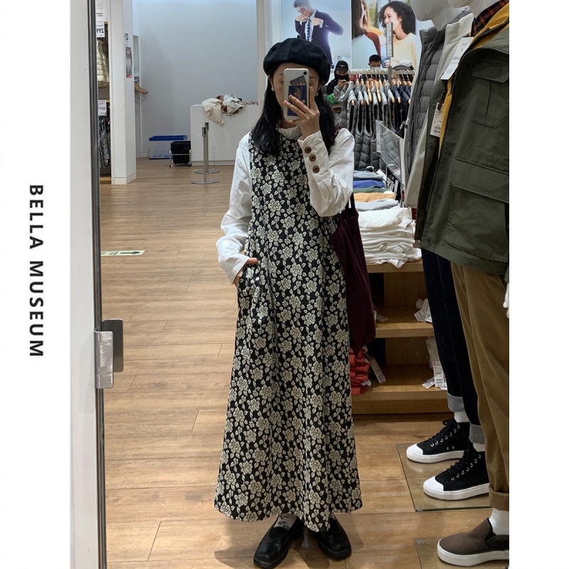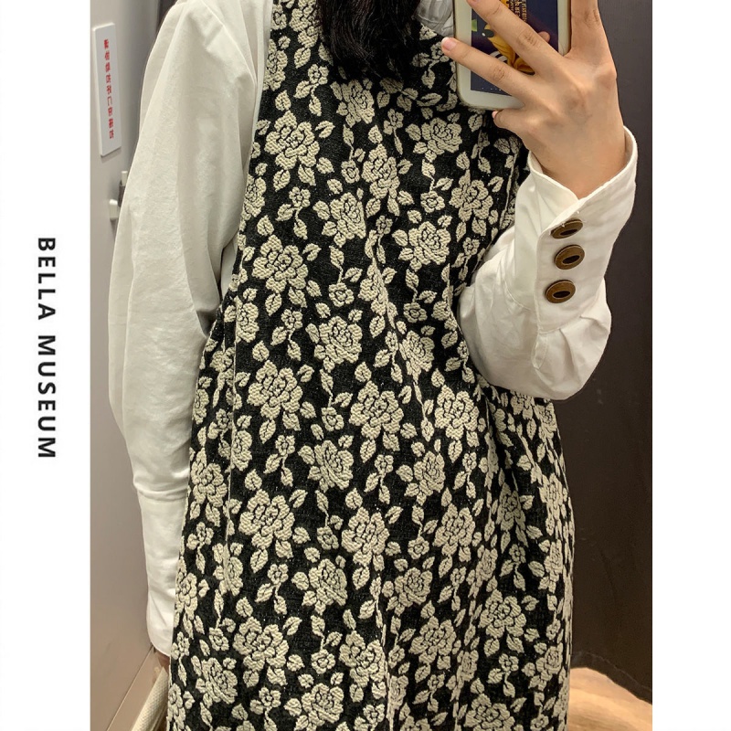 2021 spring new gentleness 100 hitch solid black white flowers half high collar bottom dress shirt two-piece suit woman