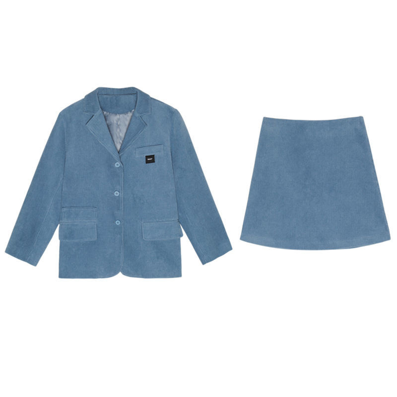 Blue two-piece set curry two sets blue jacket blue half body dress curry coat curry half body dress