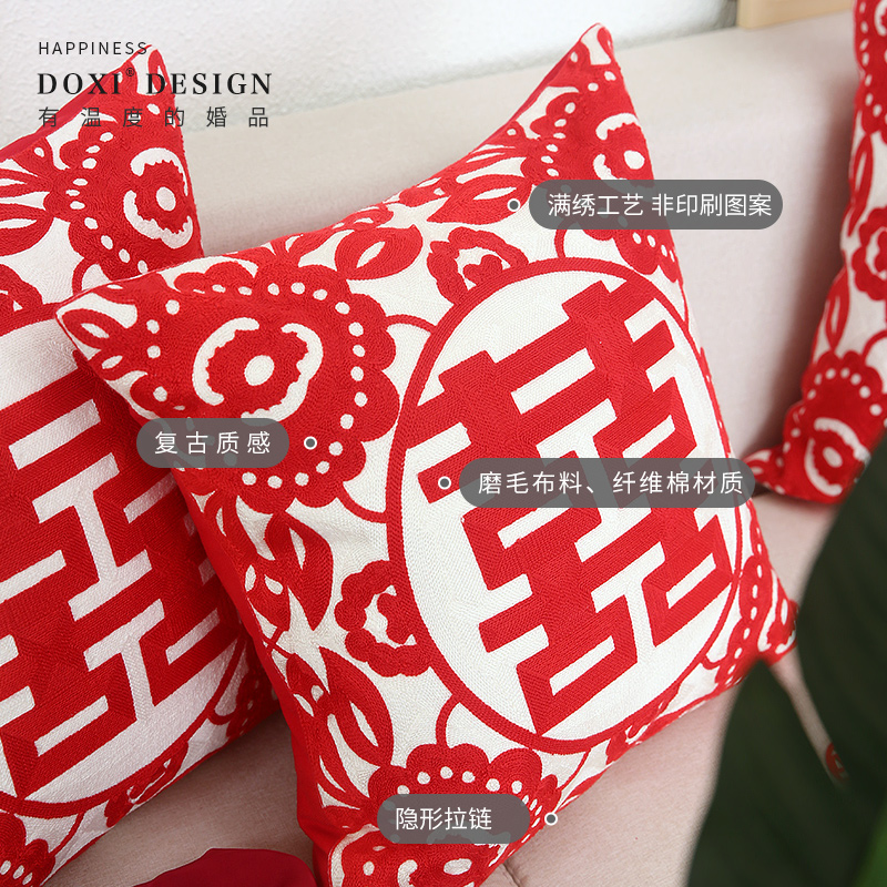 Chinese Wedding Celebration Character Embroidery Velvet Pillow Sofa Bed Red By Xinjiang Cotton Pillow Cover Wedding Supplies
