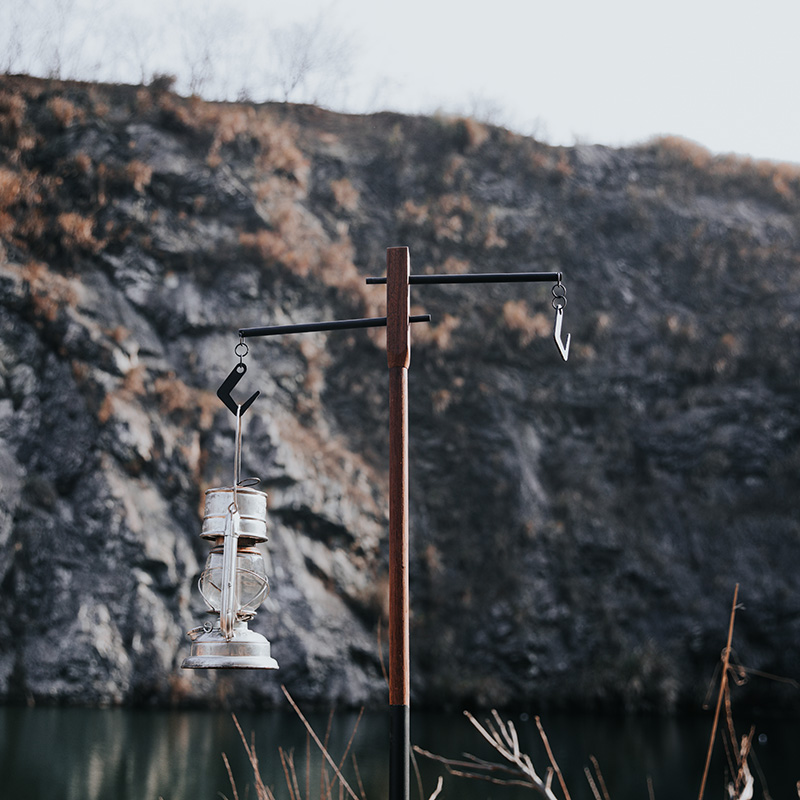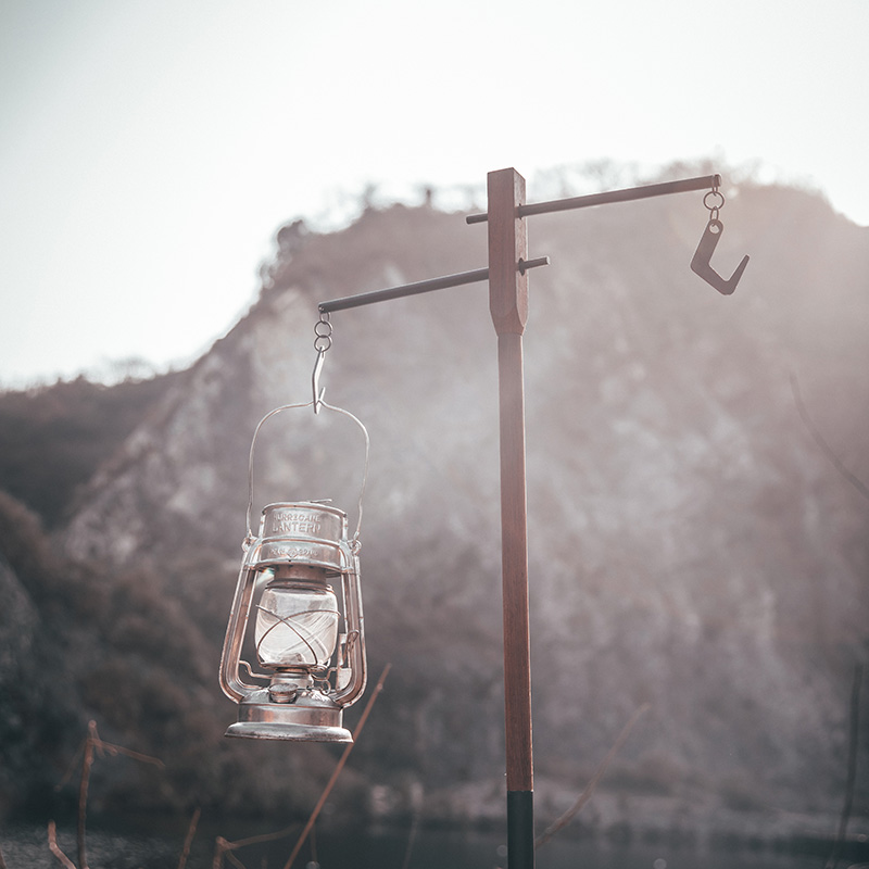 Hanfor outdoor camping equipment high-grade retro solid wood three-section portable iron bracket kerosene lamp hanger