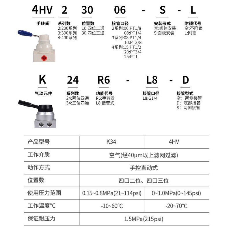 Pneumatic manual valve hand valve 4HV-020304 K34R6 hand valve cylinder control reversing switch hand pull valve