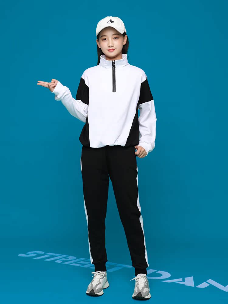 Girls' sweater suit autumn clothes 12 junior high school students sports loose 13 girls two-piece suit 15 years old trendy style