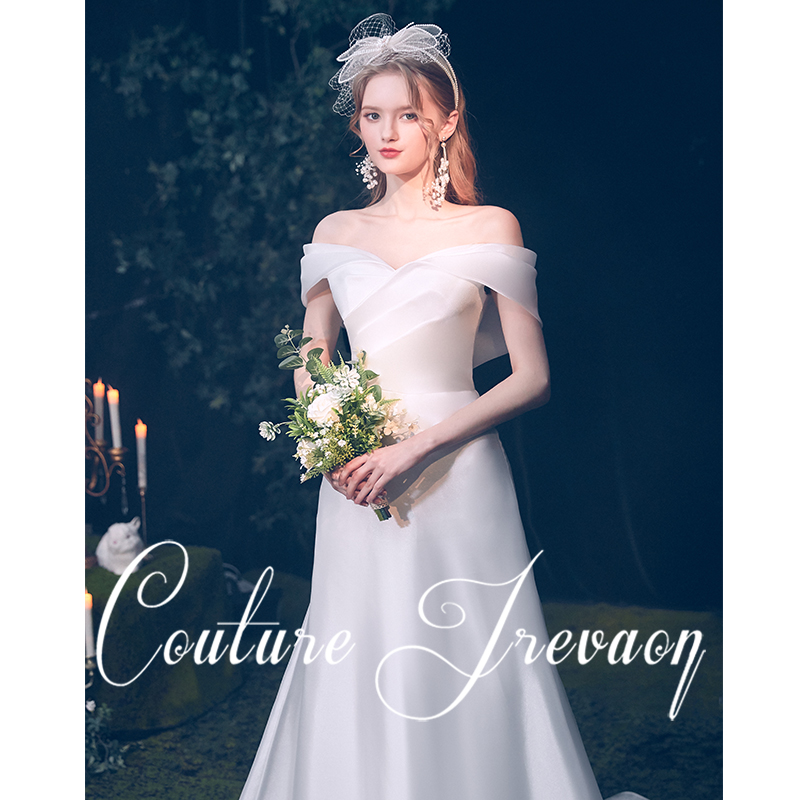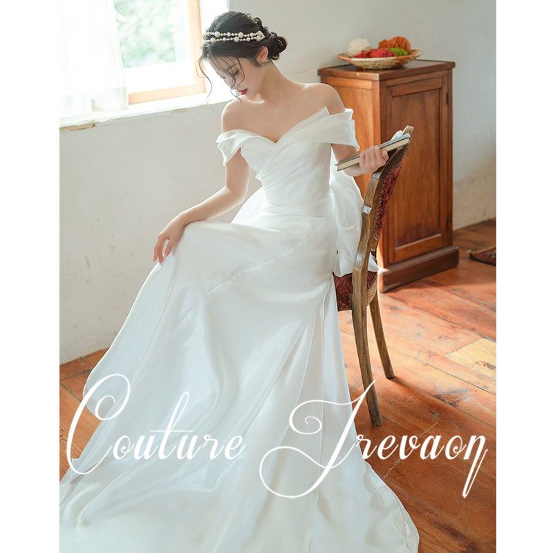 2021 new style (libra)fishtail summer satin French light wedding dress skirt temperament bride one shoulder
