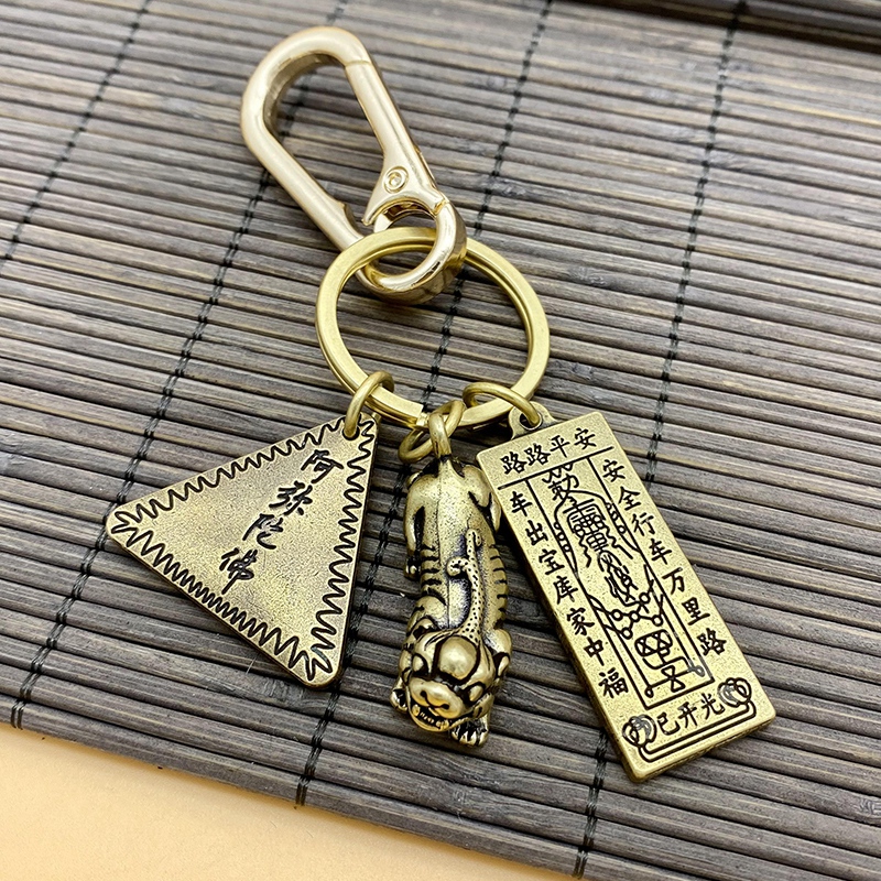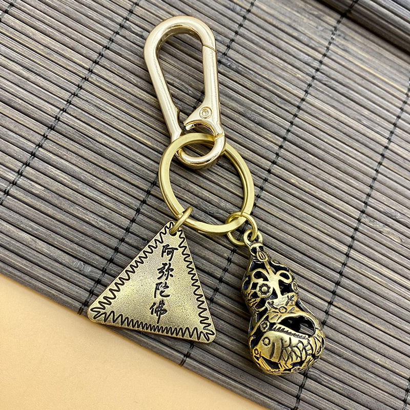 Brass amulet keychain pendant Pure copper Amitabha Buddha brand car key pendant copper gourd mascot