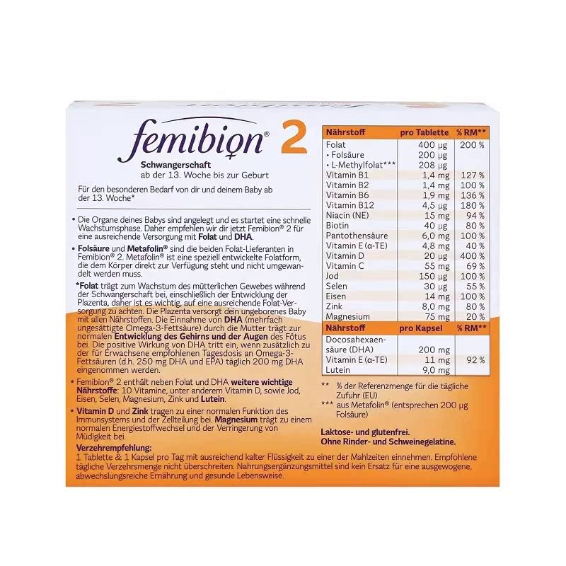 German femibion ivian 2 paragraphs 1 month amount of folic acid pregnancy lactation DHA Maternal special