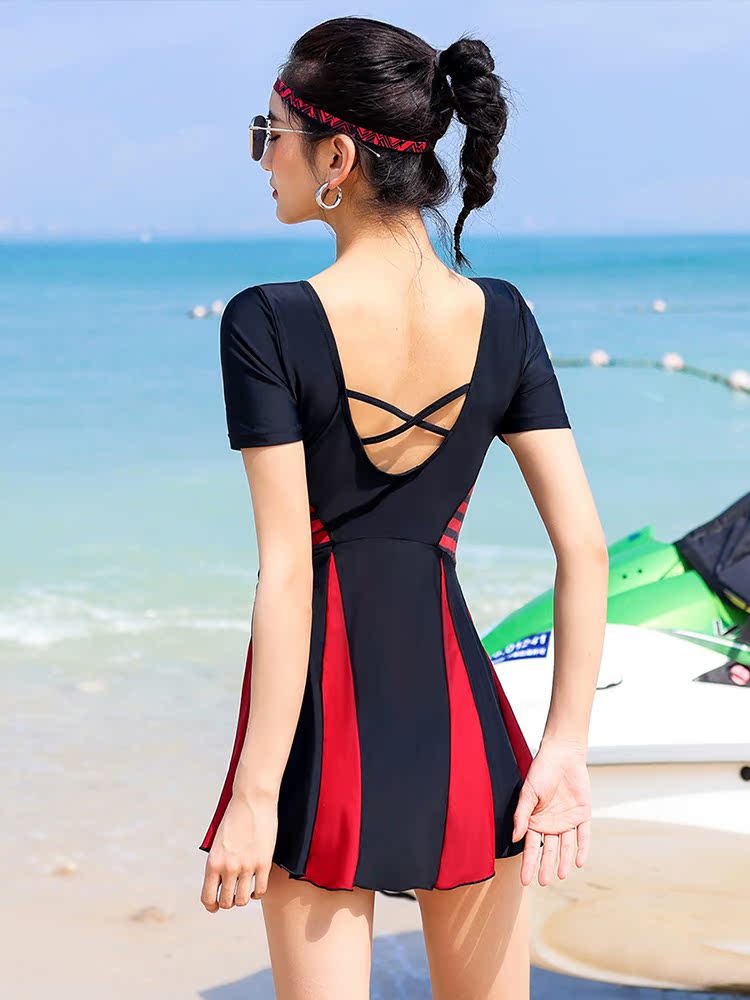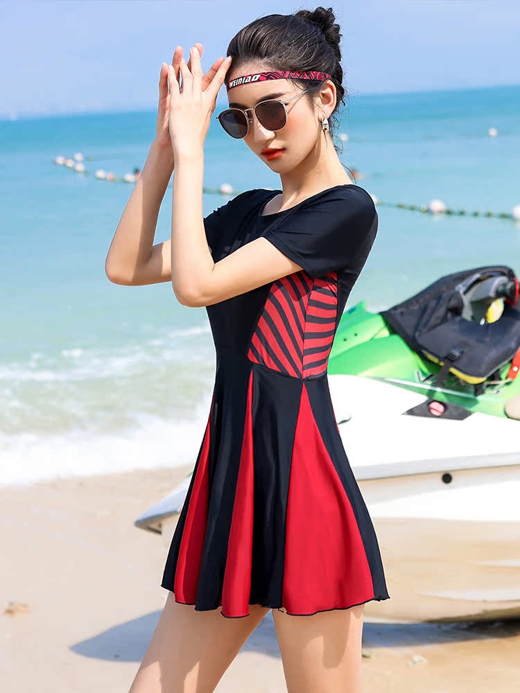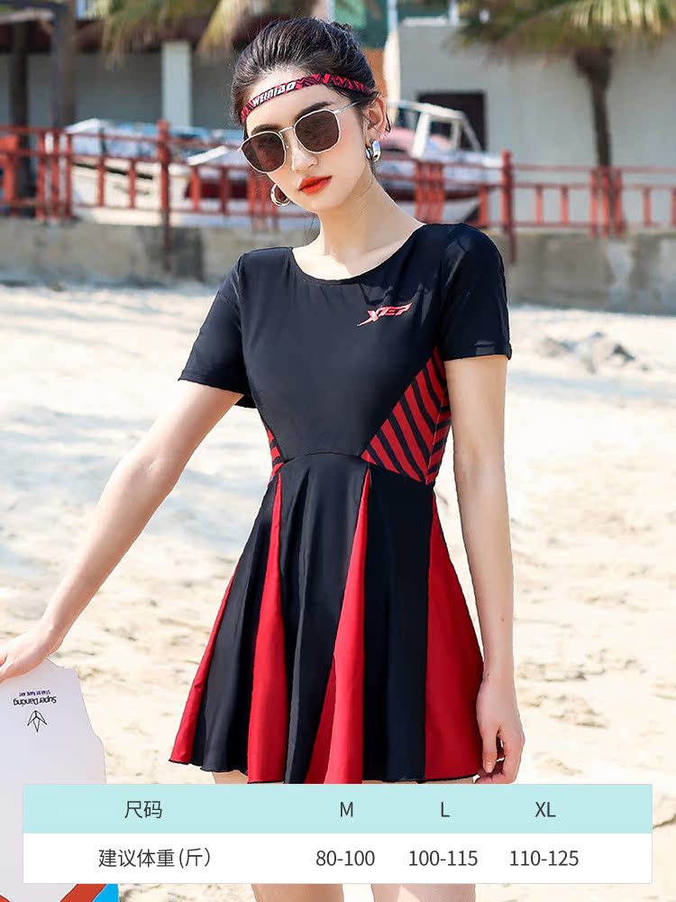 Xtep swimsuit women's one-piece skirt style conservative and thin Korean version of the fashion boxer small chest gathered to cover the meat hot spring swimsuit