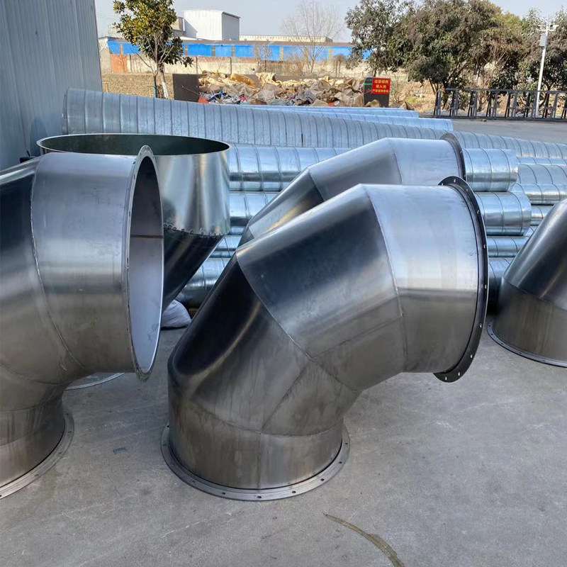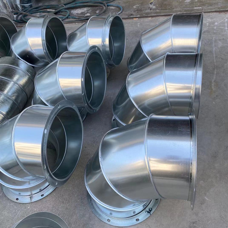 Custom stainless steel thickened 90 degrees 45 degrees 60 degrees elbow galvanized white iron spiral ventilation pipe