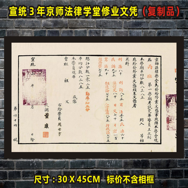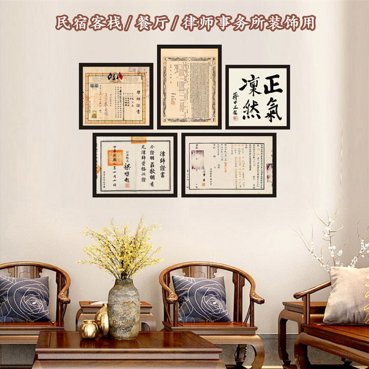 Xuantong Jingsi Law School Certificate Retro Old Objects Homestay Inn Dining Room Law Firm Decorative Painting