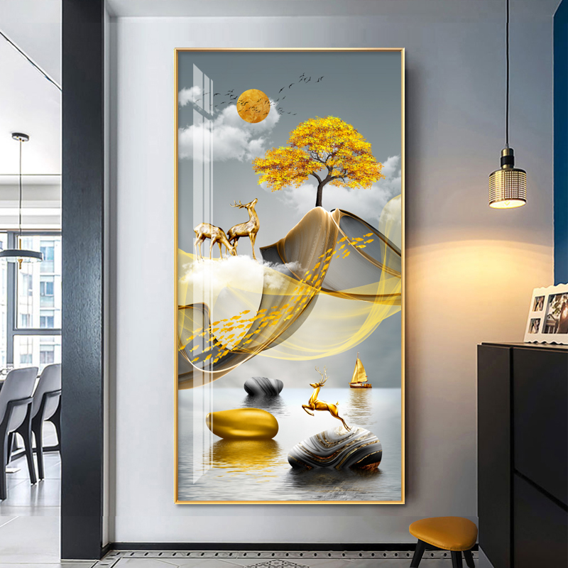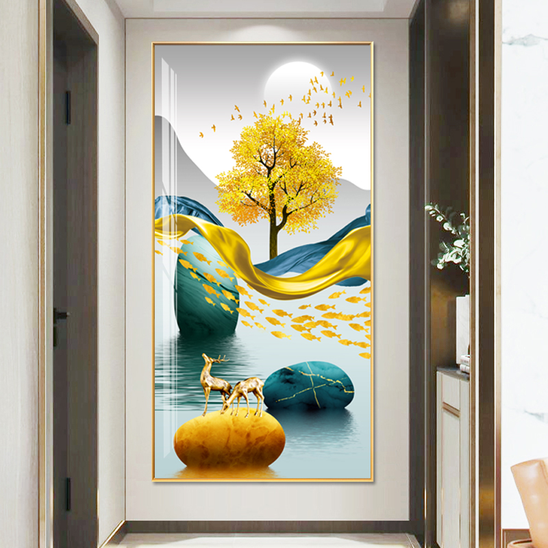 Genguan Decoration Painting Modern Brief Corridor Aisle Nordic Light Extravagant Crystal Porcelain Wall Painting Mystic Living Room Entrance Hang Painting