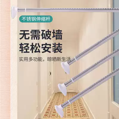 Non-perforated telescopic rod curtain rod balcony clothes door curtain wardrobe telescopic rod bathroom door curtain hanging pole free of installation
