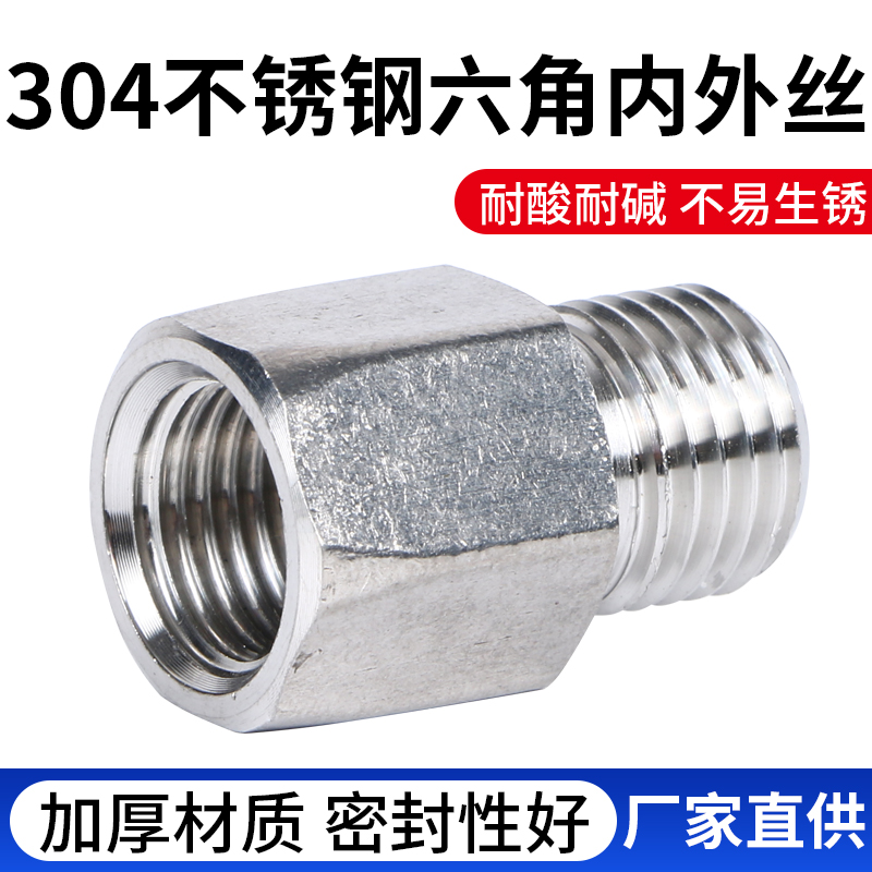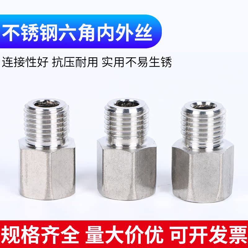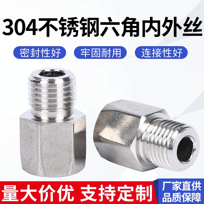 304 stainless steel internal and external wire tooth hexagonal conversion joint pressure meter welding thread 1234 to fill core adapter