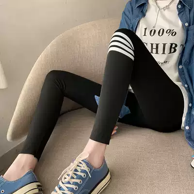 Shark skin inner pants for women to wear spring and autumn and summer thin high-waisted belly and hips tight black small feet Barbie pants