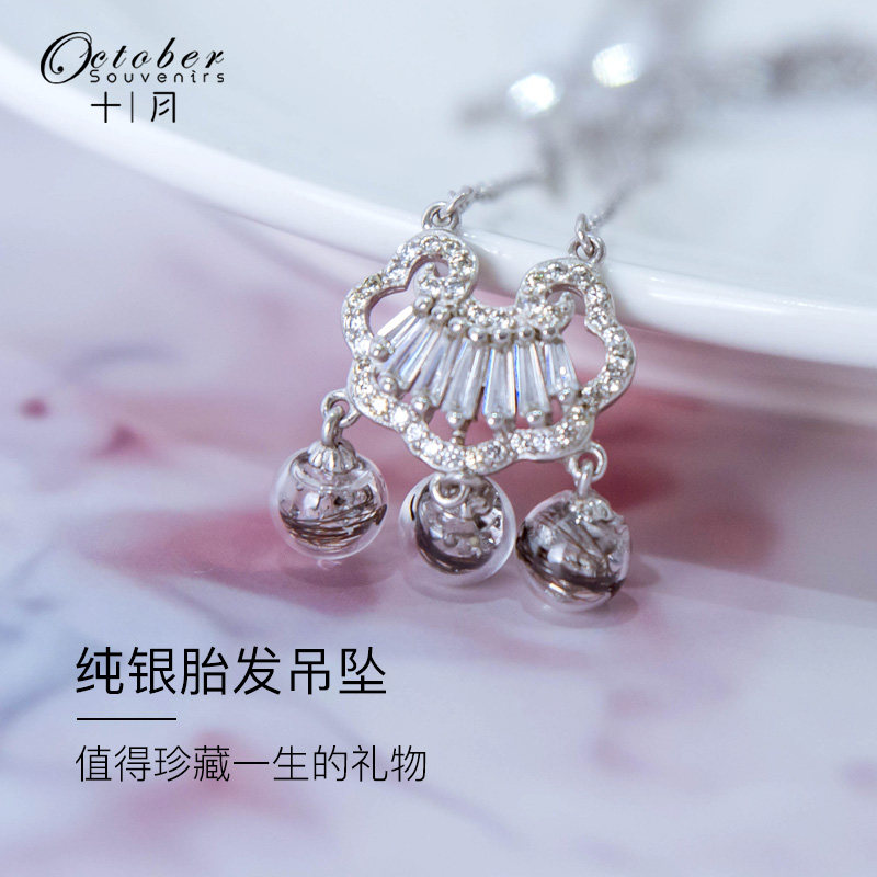 Baby Fetal Souvenirs Make Long Life Lock S925 Pure Silver Necklace Baby Fetal Pending DIY Creative Hand