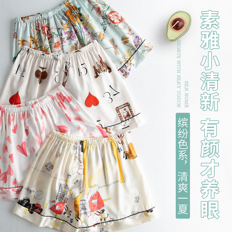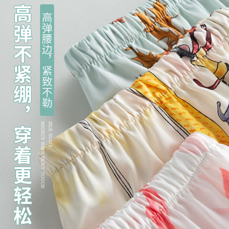 Sleeping Pants Women Summer Shorts Loose Ice Silk Thin Outside Wearing Suntie Cute Emulation Silk Home Pants Air Conditioning Casual Shorts