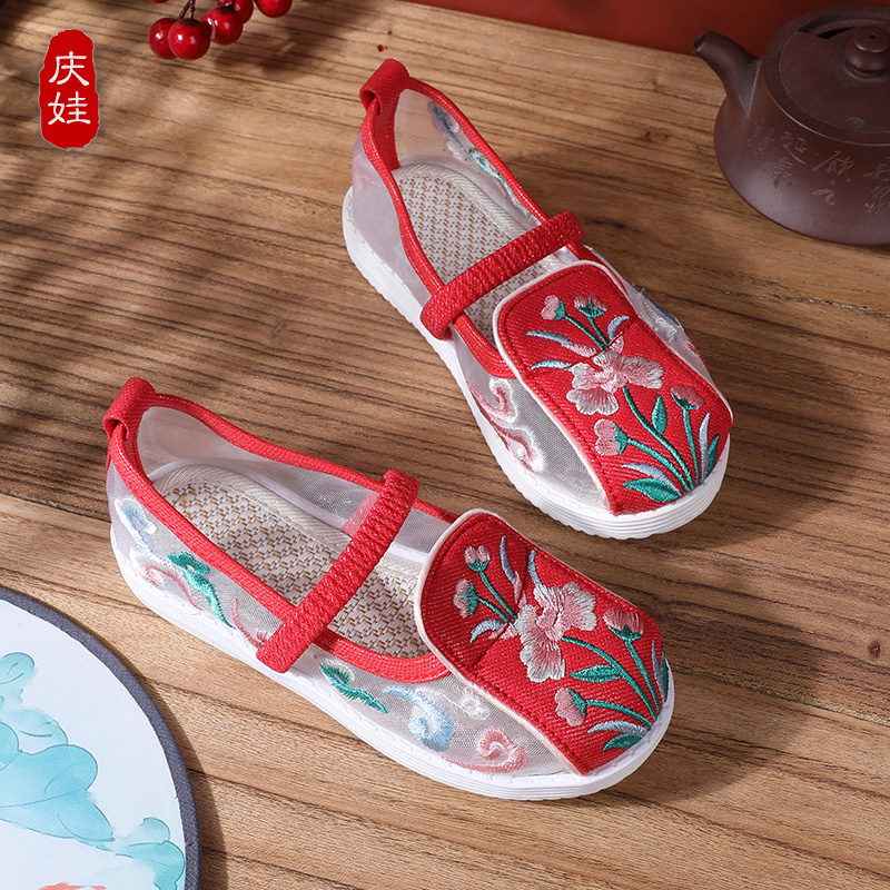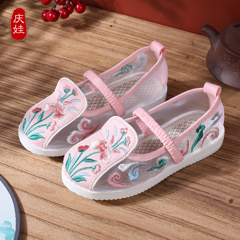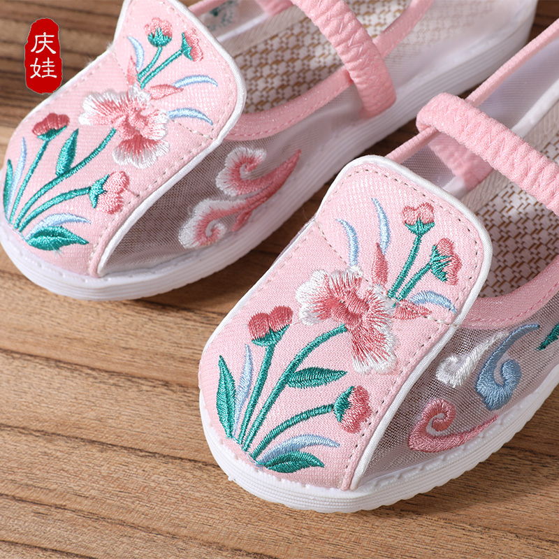 Girl Hanfu Shoes 2023 Summer New Ancient Dress Ancient Wind Sandals Old Beijing Cloth Shoes Mesh Yarn Children Embroidered Shoes-Taobao
