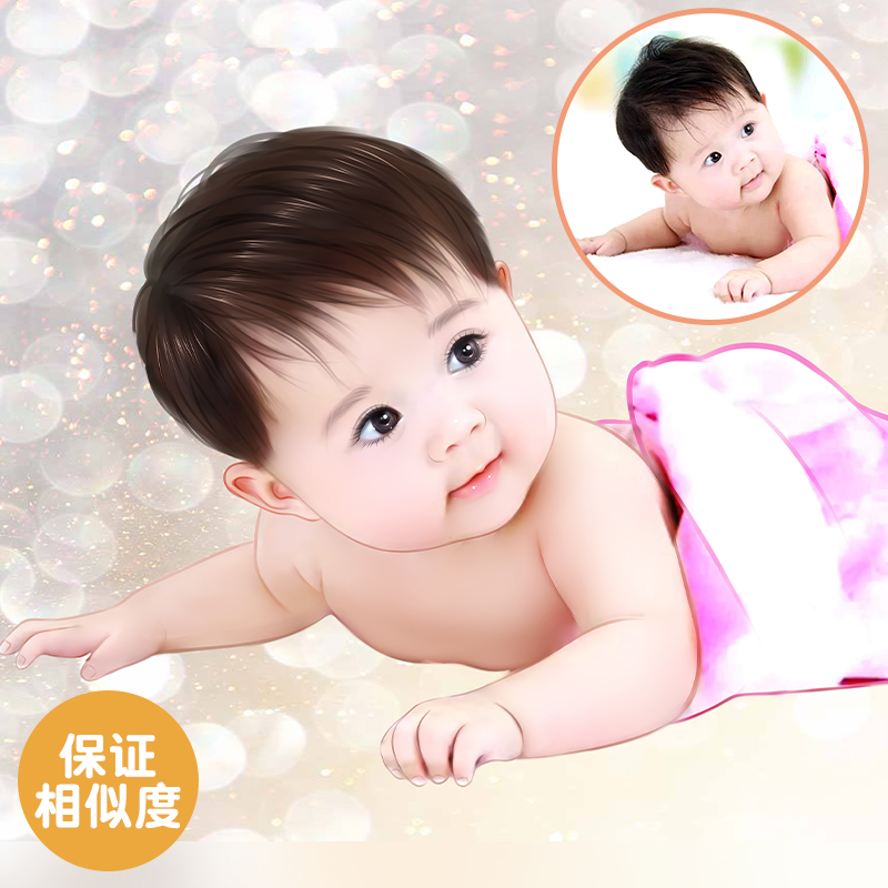 Simulated hand-painted fetal hair painting (half body) is sent to the post
