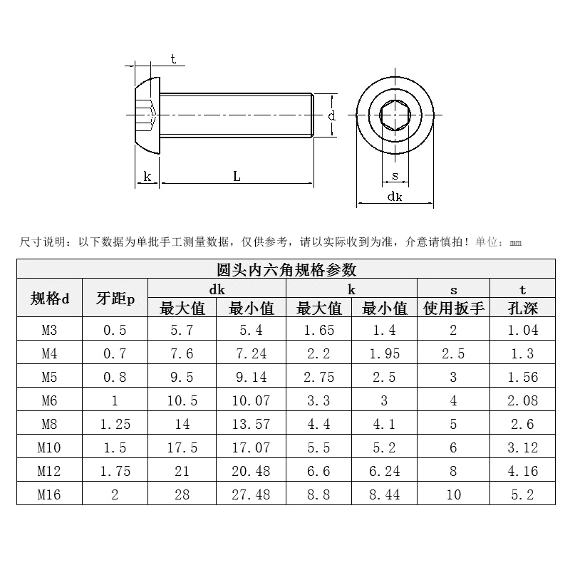 304 Stainless Steel Semi-circle Head Inner Hexagon