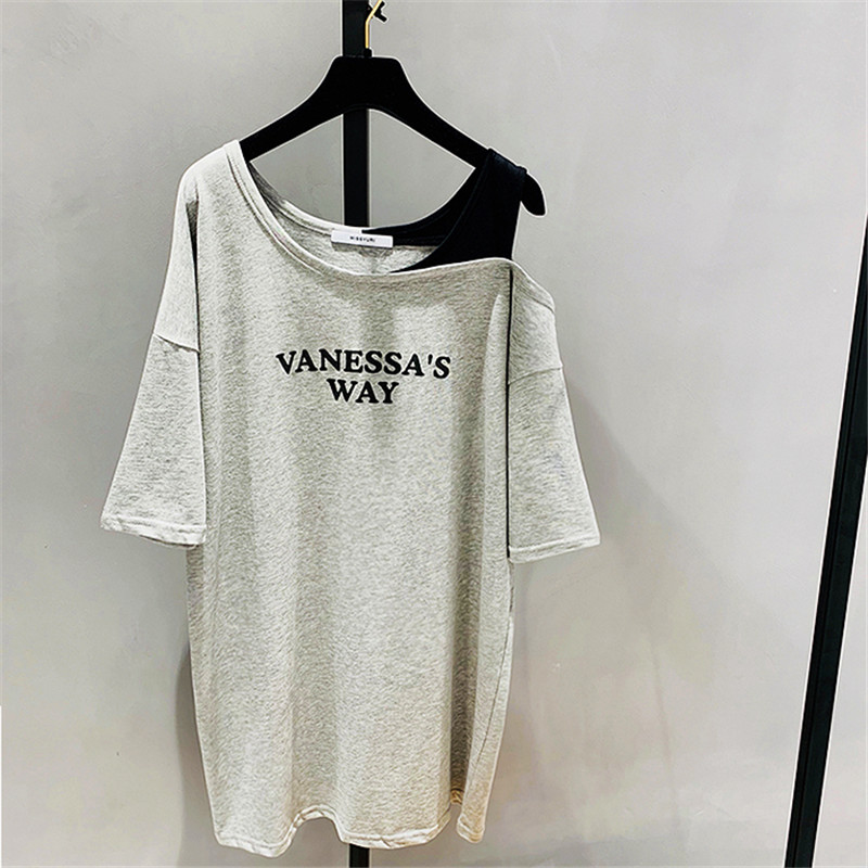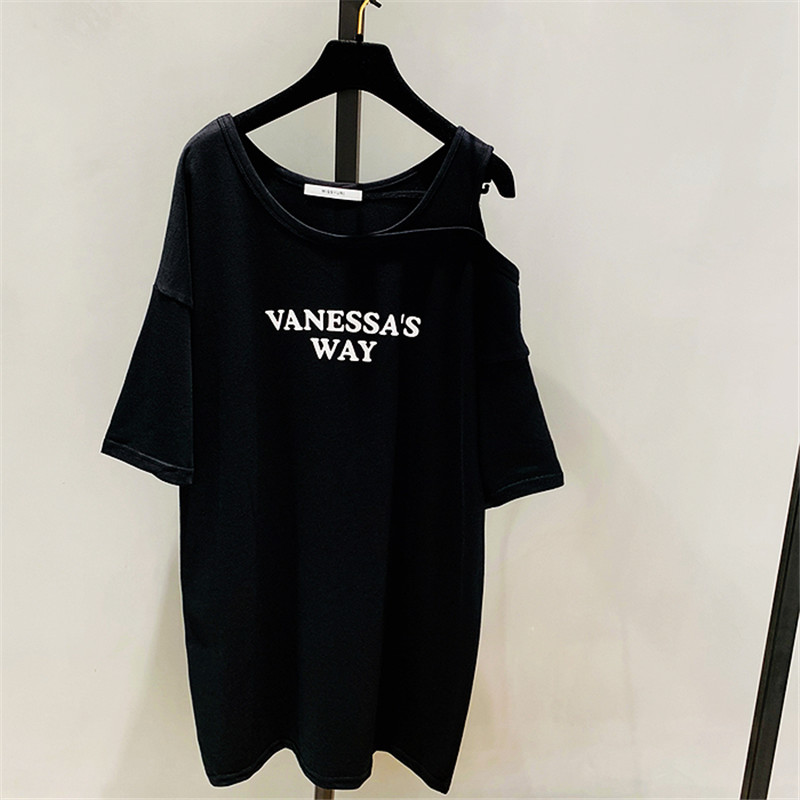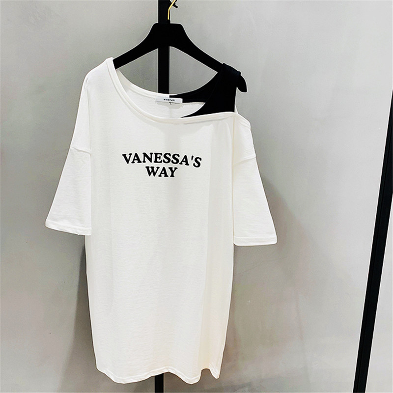 Hong Kong 2021 summer new women's clothing loose shoulder length T skirt short-sleeved T-shirt women's dress is thin and medium-length version