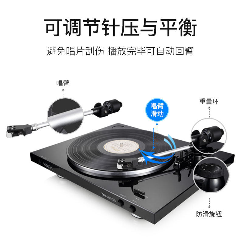 VOXOA front shuttle T50 fully automatic black adhesive record machine LP electric record machine retro sound machine iron triangular singing head