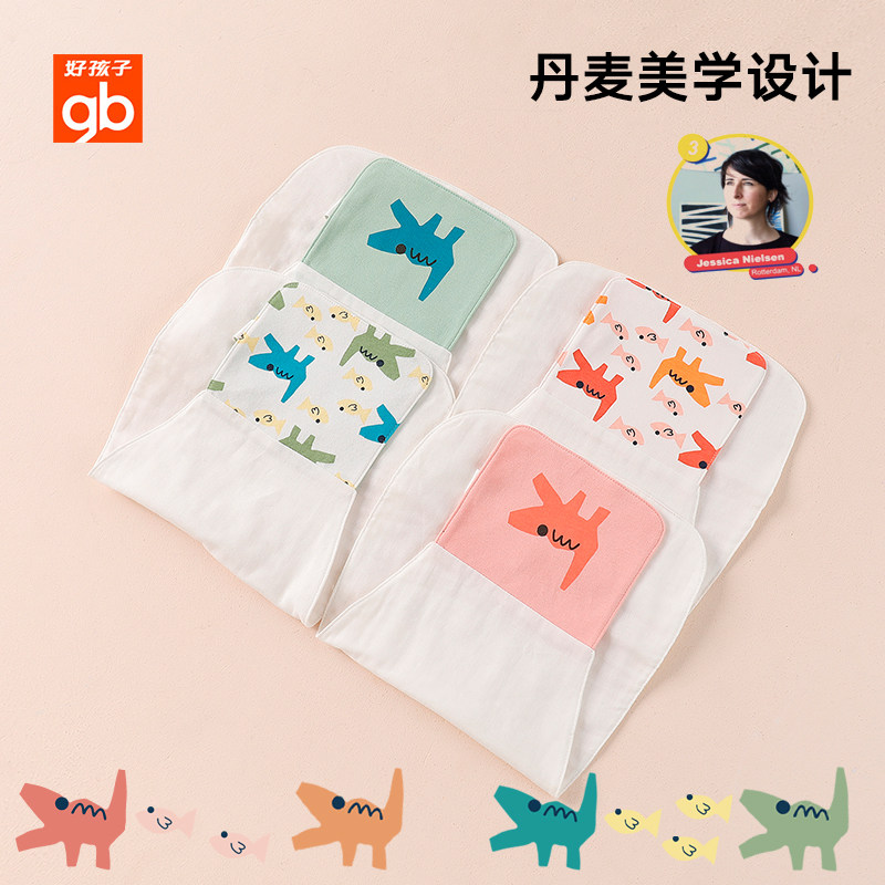 gb Good child baby sweat towel Kindergarten pure cotton sweat towel Children's pad back towel Gauze sweat towel 2 sets