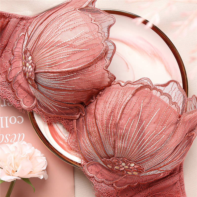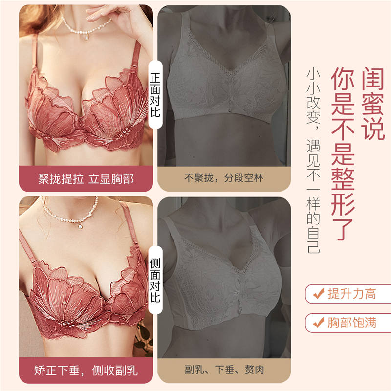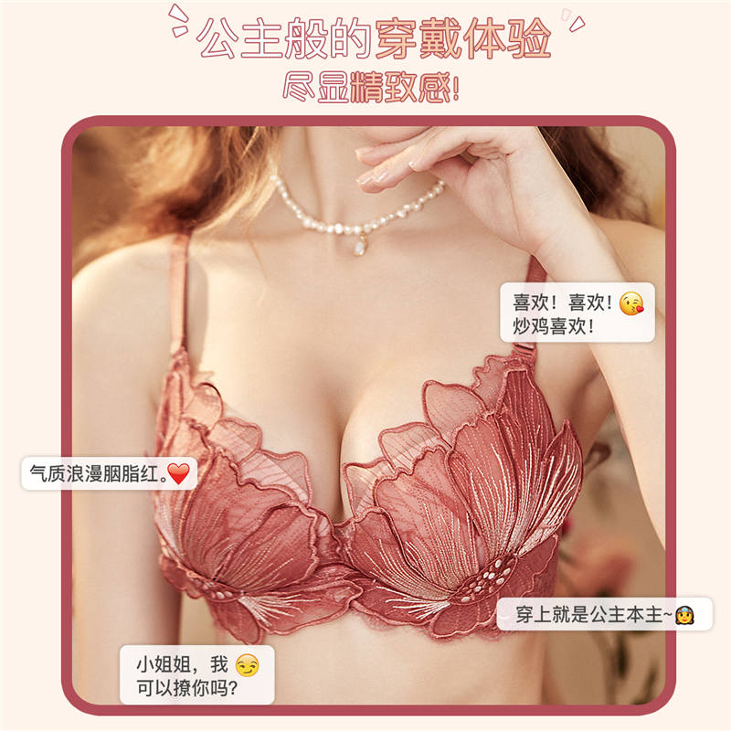 (Member exclusive) Runmicro new Hua Kui small chest gathering bra without steel ring embroidery sexy lace bra