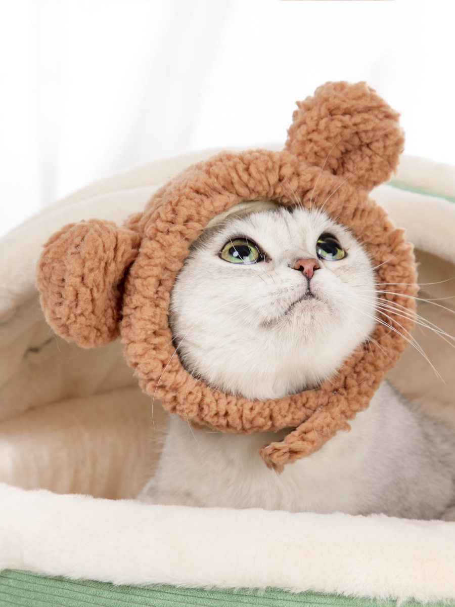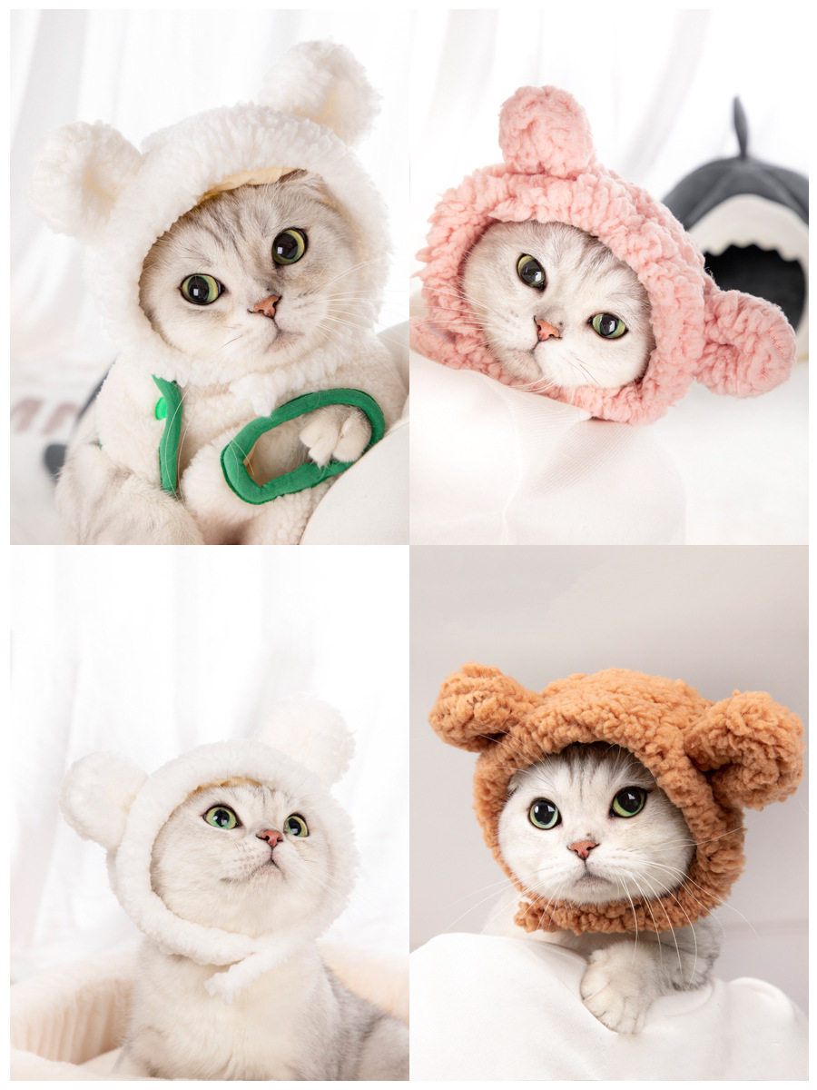 Pet hat kitty headgear to blame hat cute Diy pooch warm head decorated with cute tennis red pink ears
