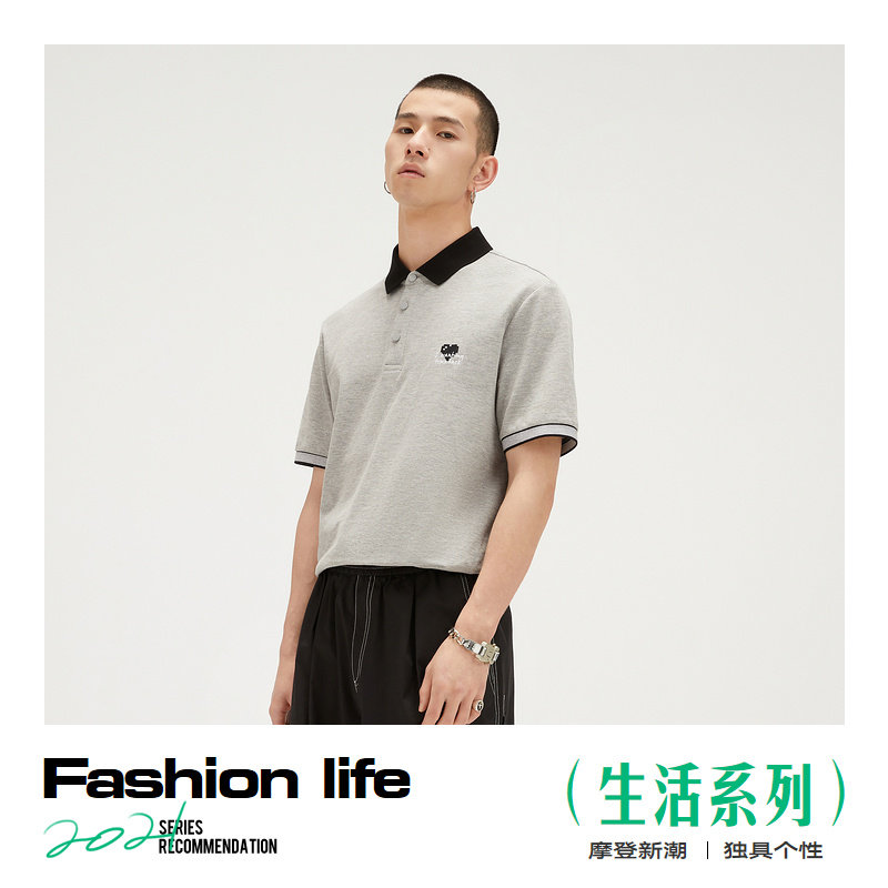 GXG men's casual grey embroidery short sleeve polo shirt men sold for 22 summer