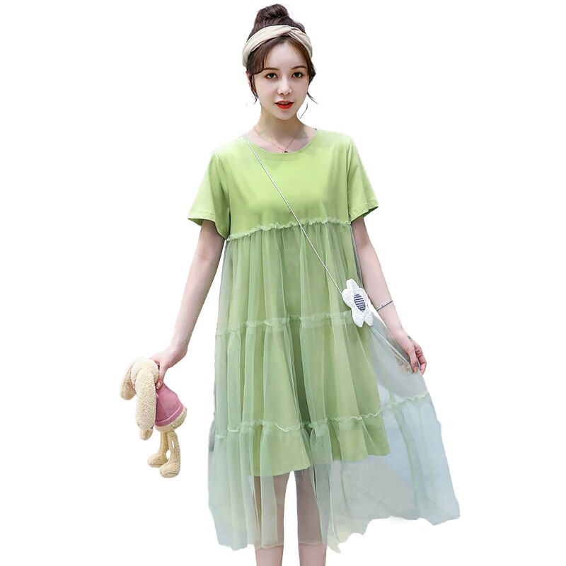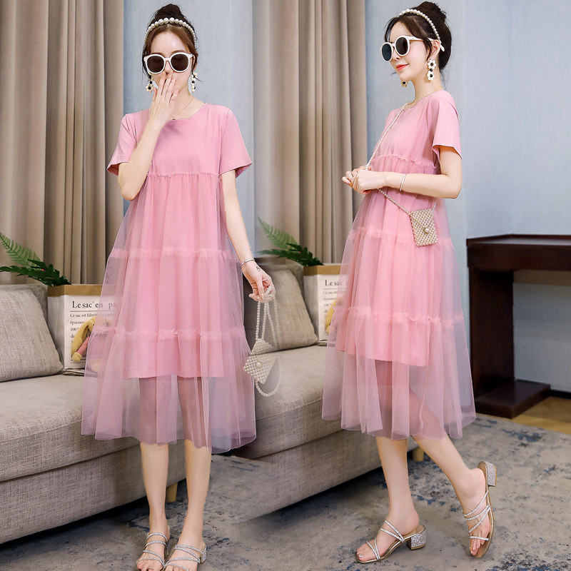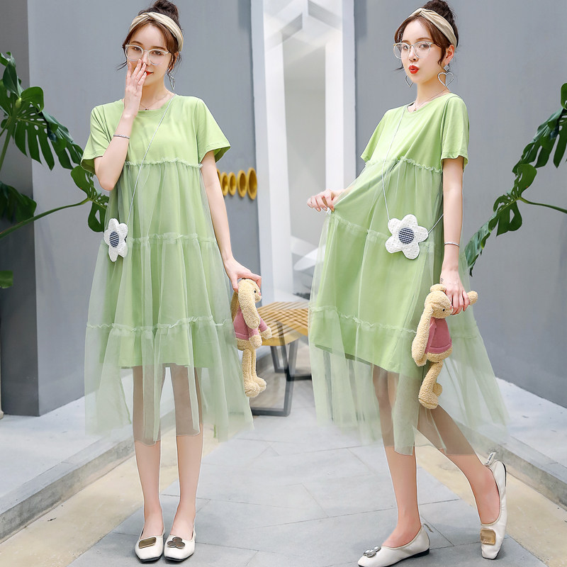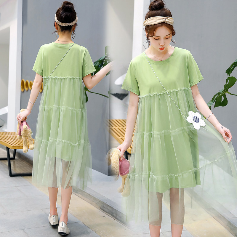 Pregnant Woman Summer Dress Foreign Dress Medium Long Version Short Sleeve Pregnant Woman Dress Summer Gestation Woman Dress Summer Suit Net Red Spring New Blouse