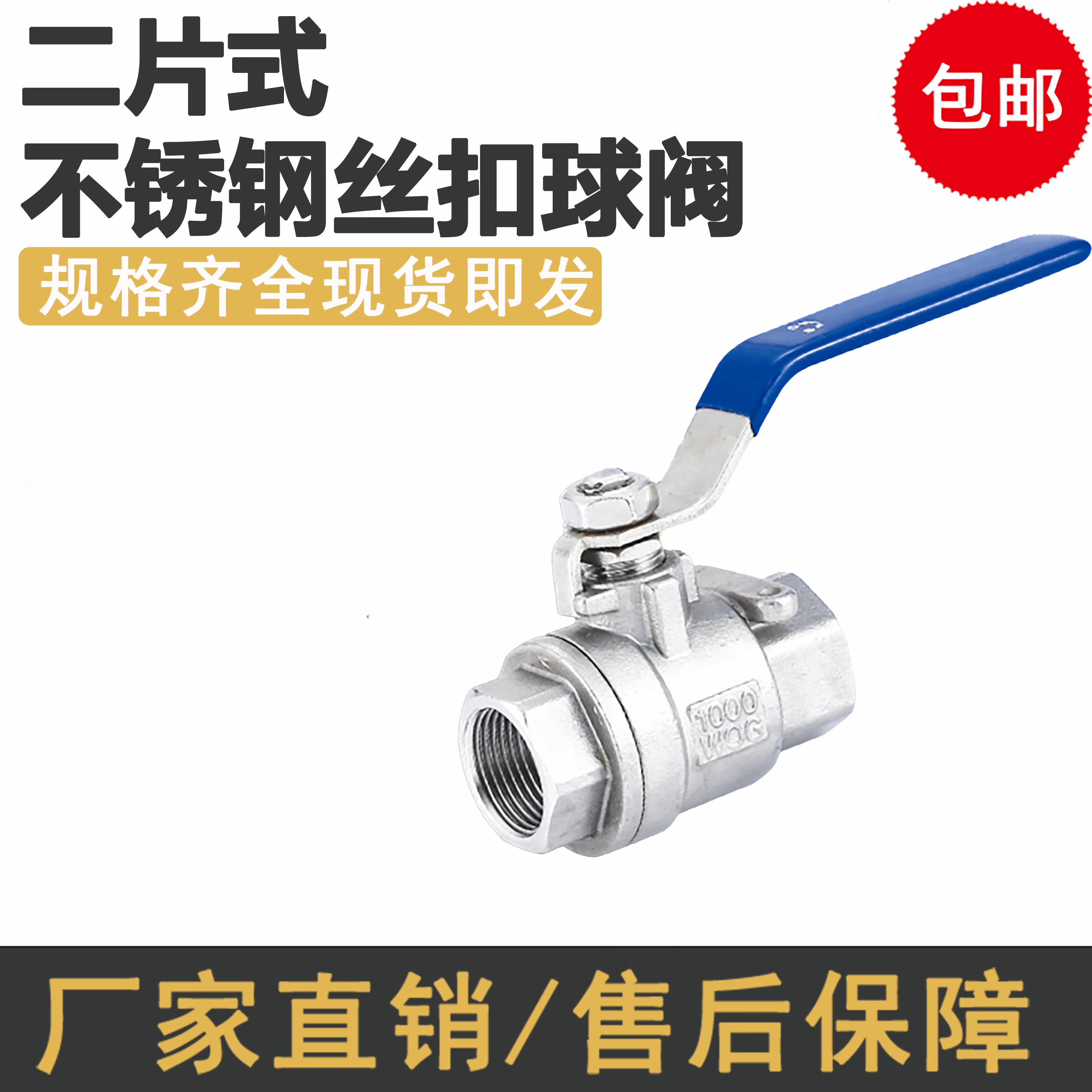 304 stainless steel ball valve two-piece two-piece inner thread inner wire water switch valve 4 minutes 6 minutes 1 inch DN2025