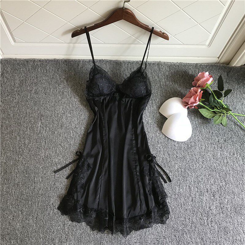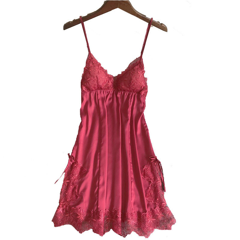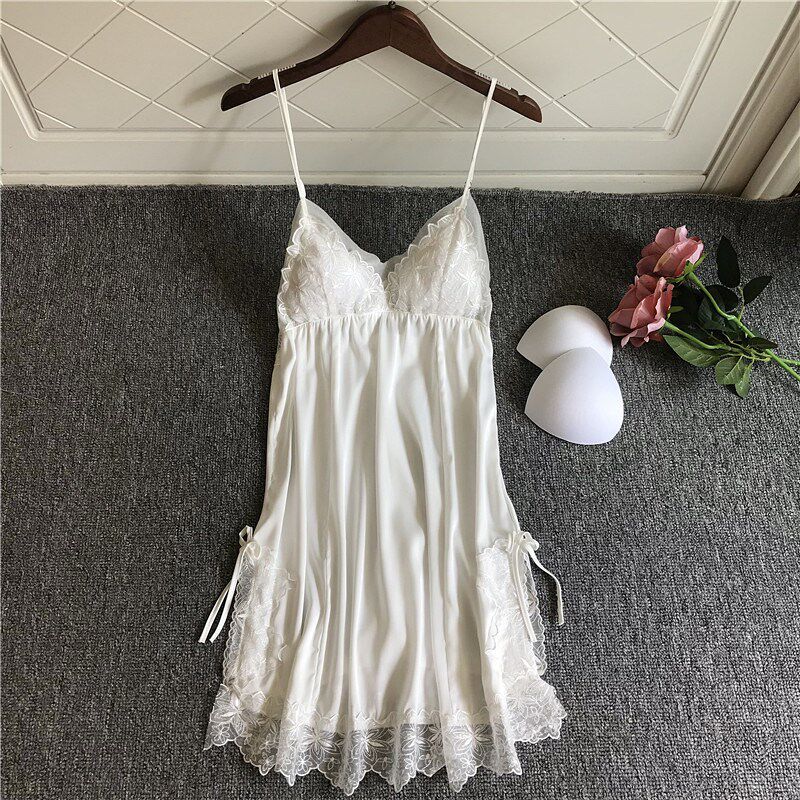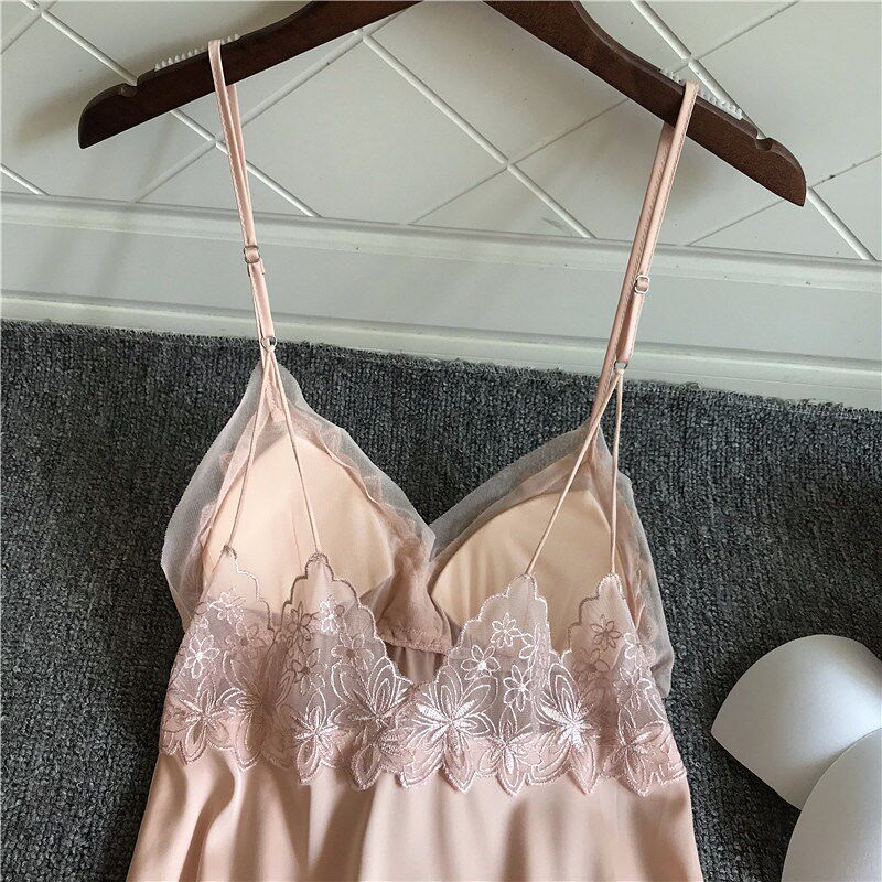 Japanese Pyjamas Women's Summer New Ice Silk Lace Sexy Harnesses Sleeping Skirts Loose big sizes with chest cushions Home Home Clothing