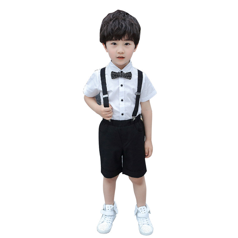 Boys shirt hugging baby bag pants suit summer baby flower girl dress Western style children's little host piano performance clothes tide