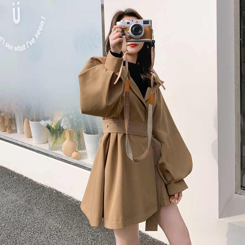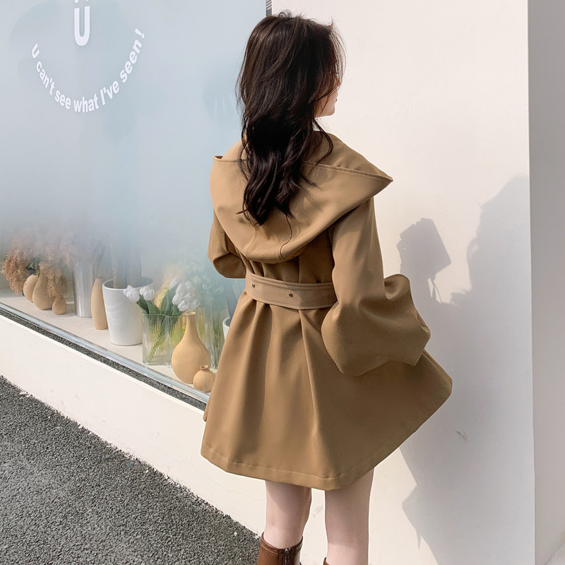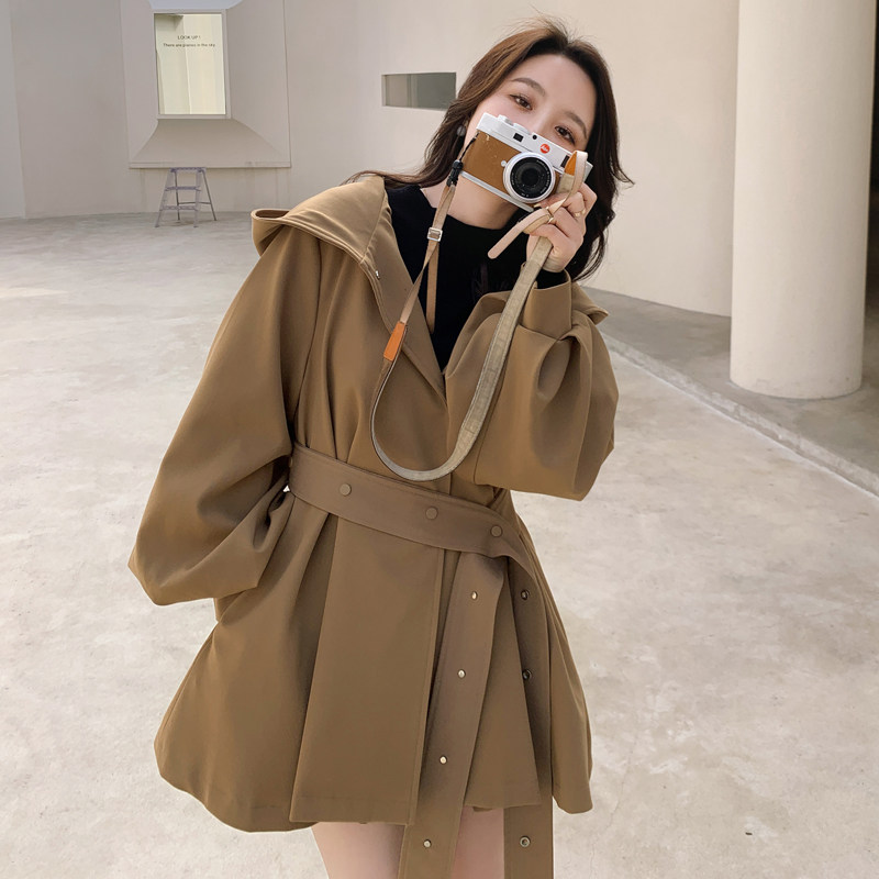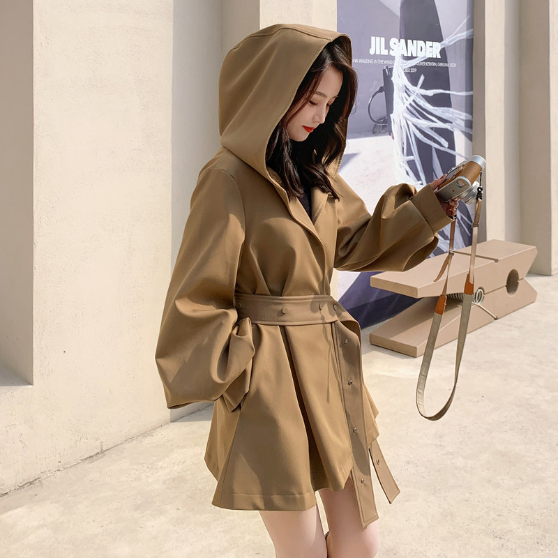 Card its color windsuit woman short 2022 autumn new Korean version loose temperament with cap cloak collection waist small sub jacket