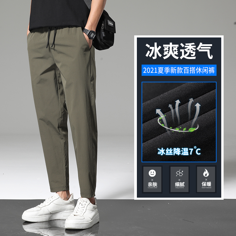 Nine pants summer thin men 2022 ice screens cool breathable middle young men's relaxed pants