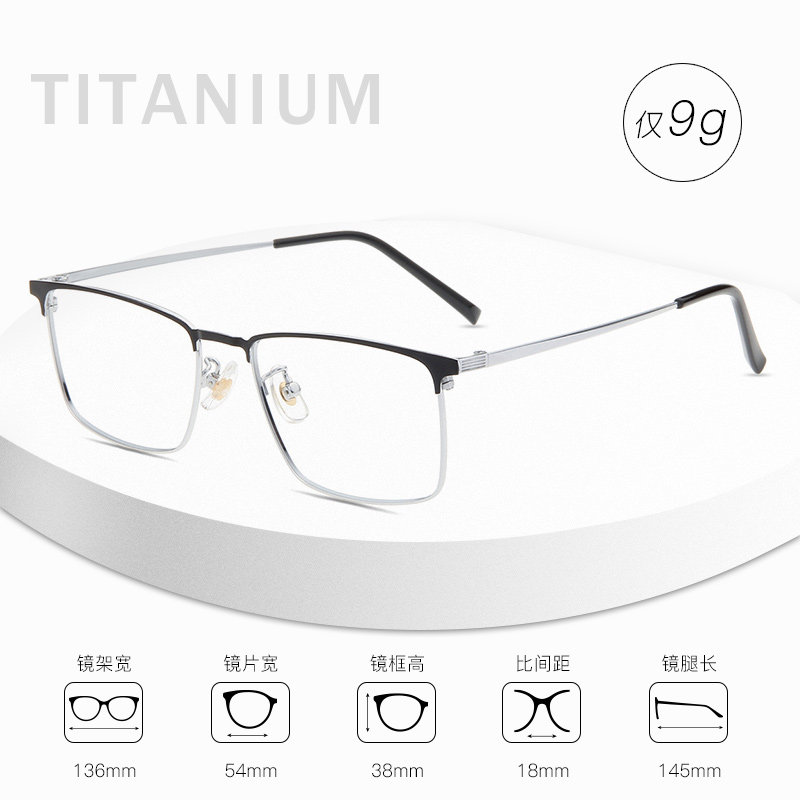 Myopia Glasses Men's Pure Titanium Full Frame Square Eyelframe Female small face can be matched with degree discoloration finished eyes frame mirror frame