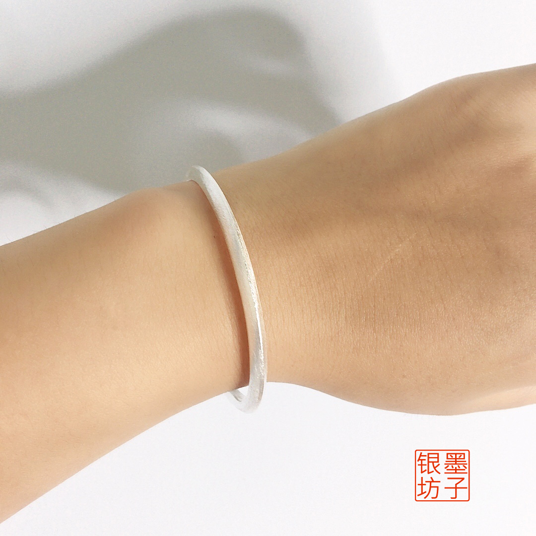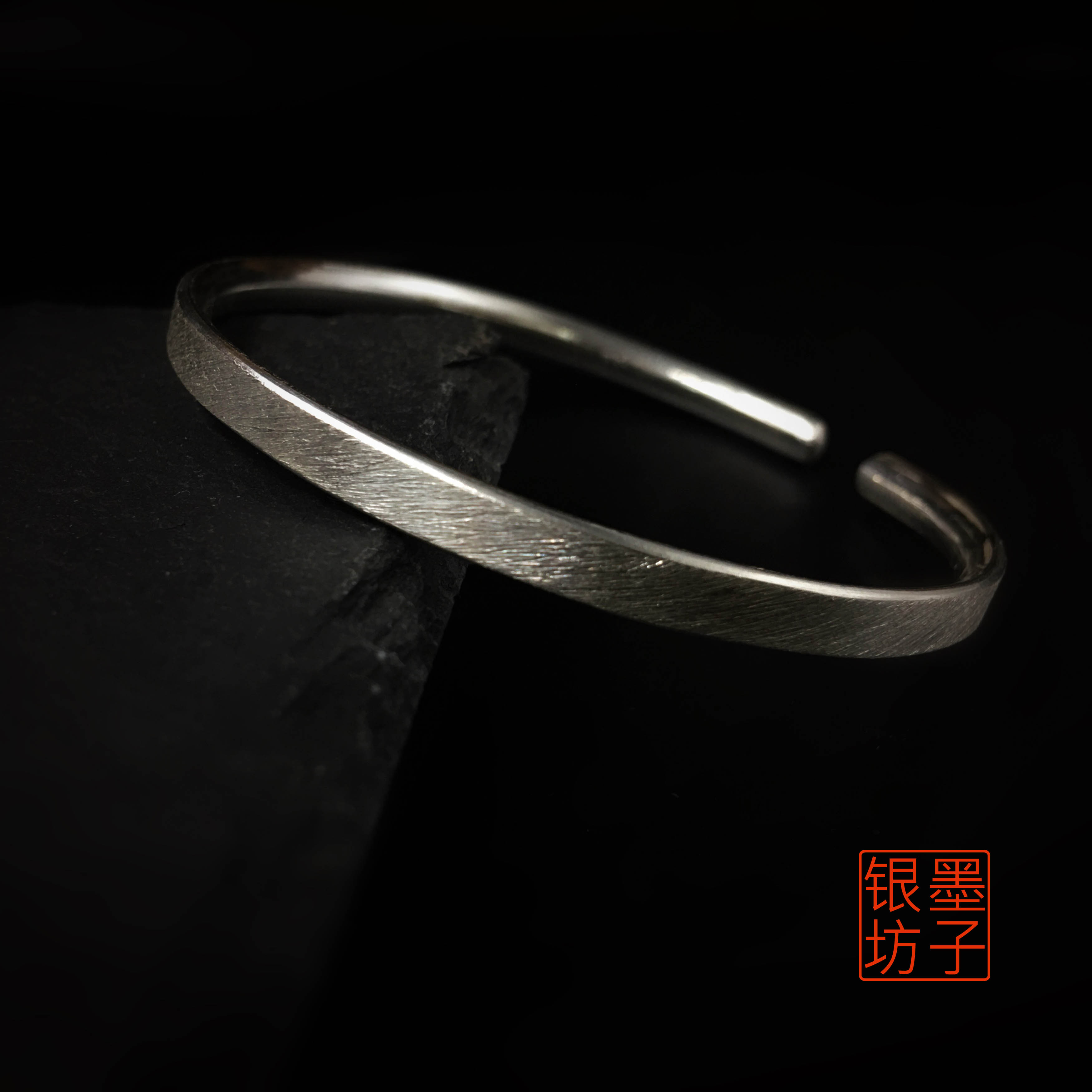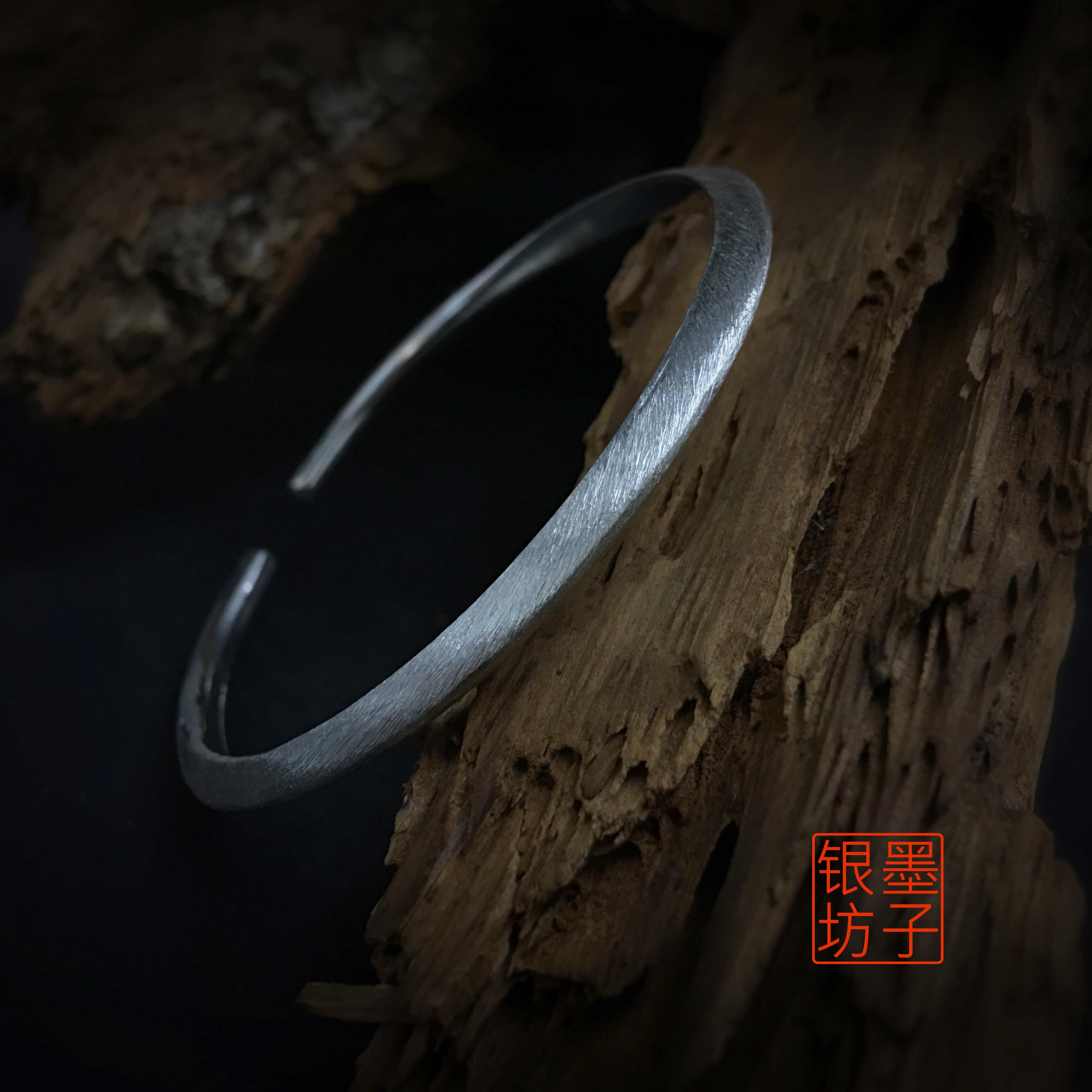 Original design 999 pure silver ancient simple character triangle frosted literary art cold and small niche air bracelet
