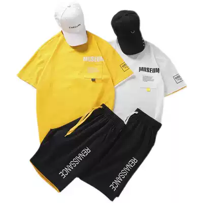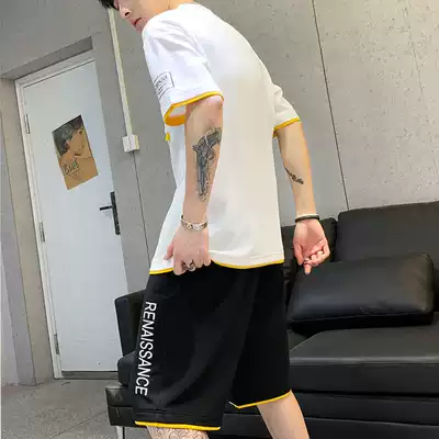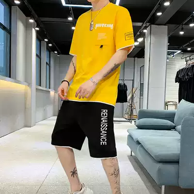 Short-sleeved suit men's 2021 new Korean casual sports trend brand ruffian handsome T-shirt shorts two-piece loose summer clothes
