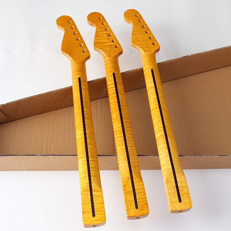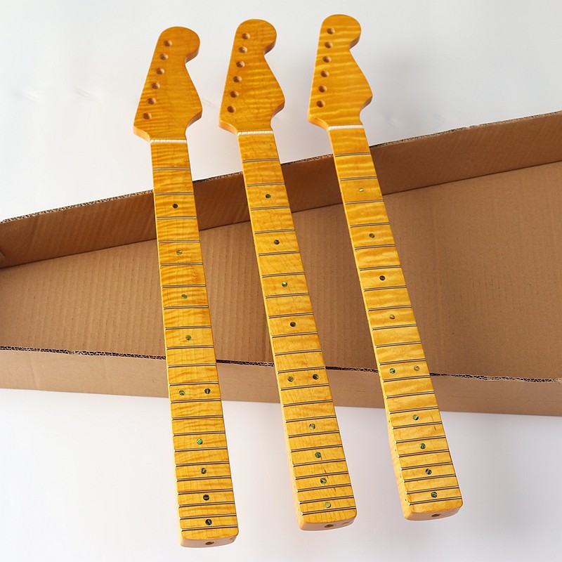 ST Tiger pattern electric guitar 21-pin 6-string one-piece neck Yellow plus maple handle DIY modified guitar student professional