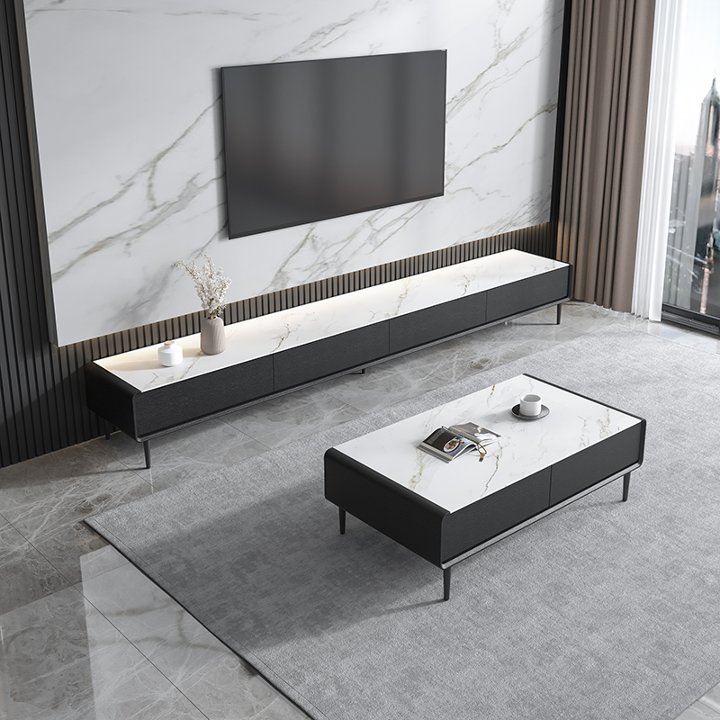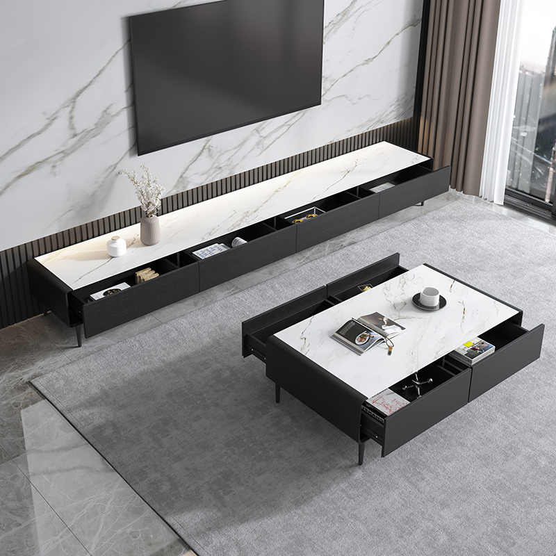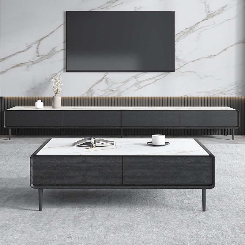 Slate TV cabinet modern minimalist small apartment living room solid wood marble light luxury minimalist TV cabinet coffee table combination