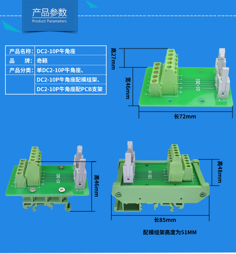 DC2-10P horn seat switching line terminal row 10 core fit PCB module frame relay plate simple solder-free end sub-table