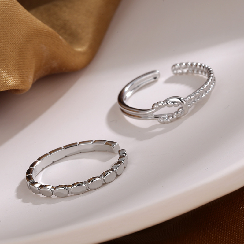 Knit geometry 925 silver opening ring female personality in tide cool combination index ring to wear joint ring