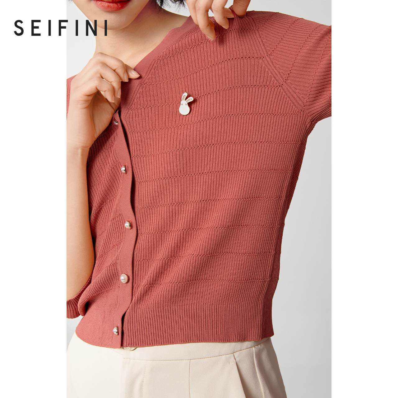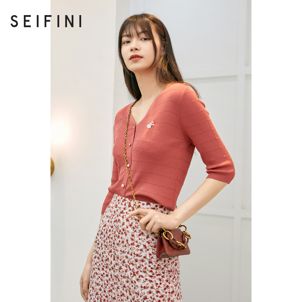 Mall Same-style Poetry Fan Weaselweaters 2021 New summer V collar 70% sleeves Knitted Cardiovert 3C4233411
