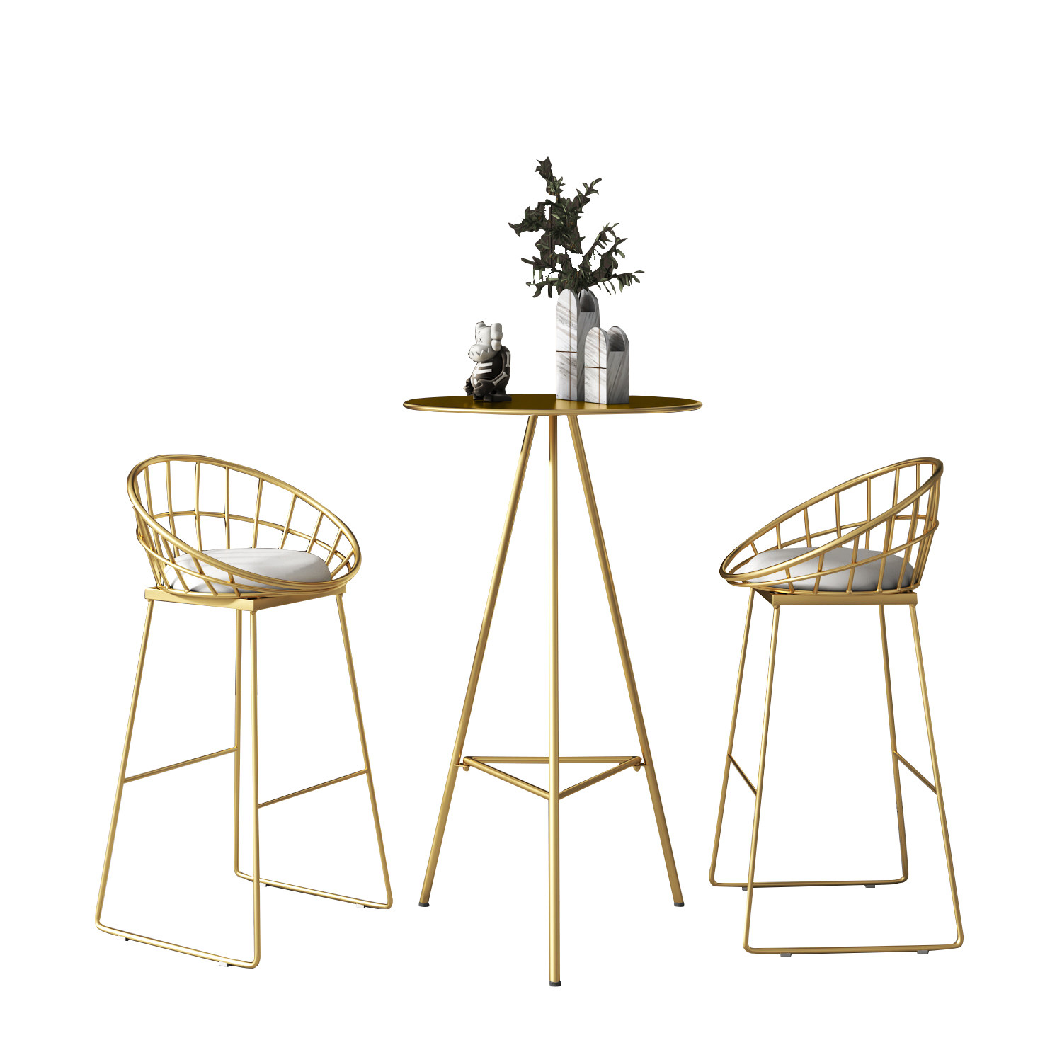 Nordic gold Wrought iron small bar table table and chair combination Household modern simple high foot round coffee table Leisure light luxury