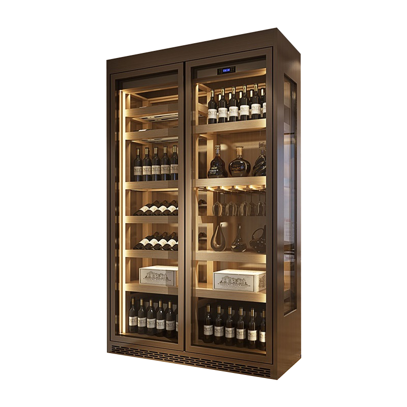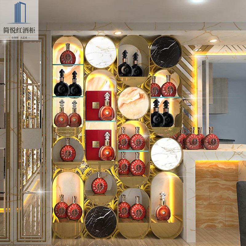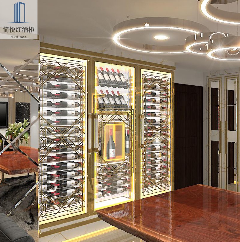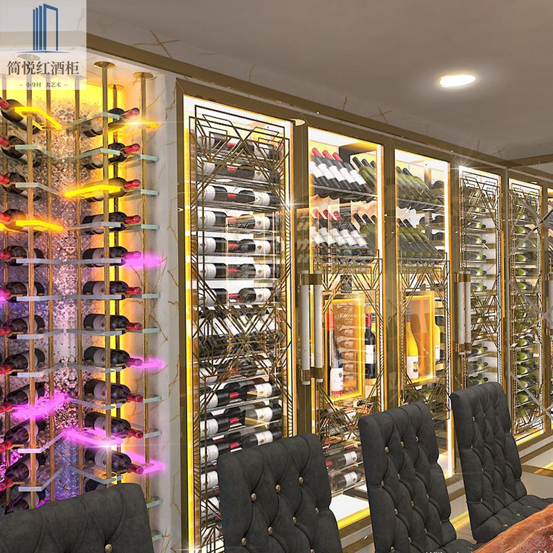 European simple stainless steel wine rack Custom constant temperature wine cabinet Household display cabinet Embedded display rack shelf