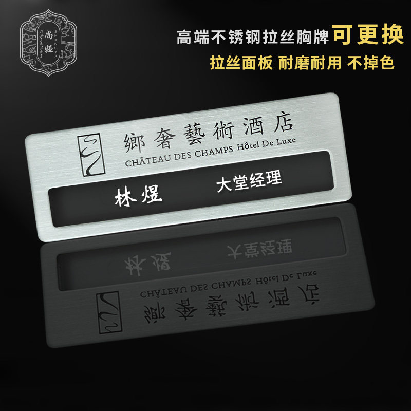Work number plate Last name Work card stainless steel Dingmade metal working card magnet Don't pin-style breast card staff order to do