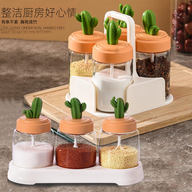 Cactus glass seasoning jar seasoning jar in combination suit seasoning case oil pot home seasoned bottle seasoning bottle-Taobao