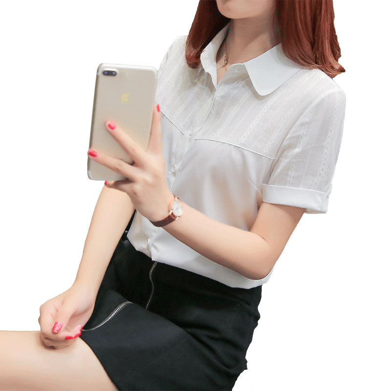European station white shirt women's short sleeves 2021 new design sense niche office uniforms temperament chiffon top
