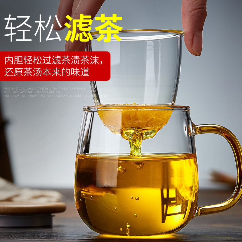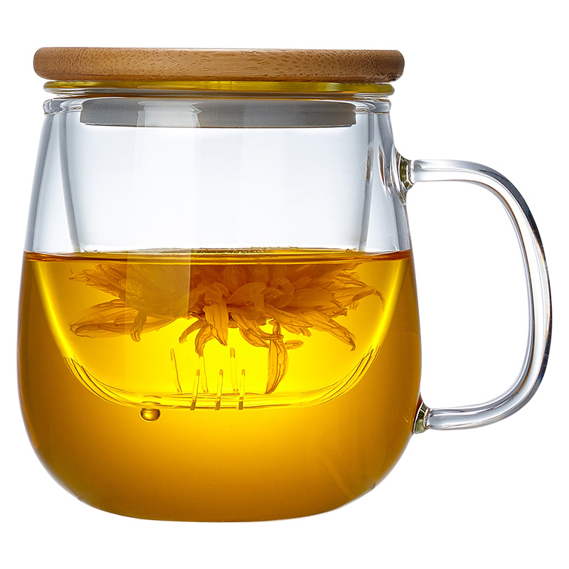 Glass Tea Cup Home Flower Tea Cup Transparent With Lid Bubble Tea Cup Office Water Glass Lady Filter Heat Resistant Wood Cover Cups-Taobao