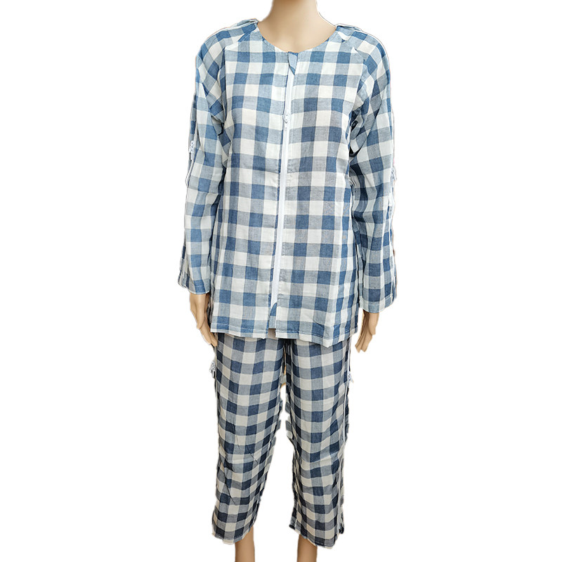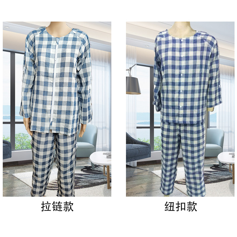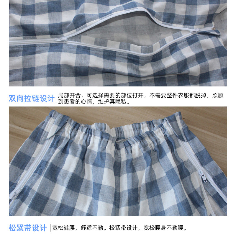 Bedridden elderly zipper-type easy to wear and take off nursing clothes fracture patient's sick clothes summer cotton cotton yarn breathable pajamas